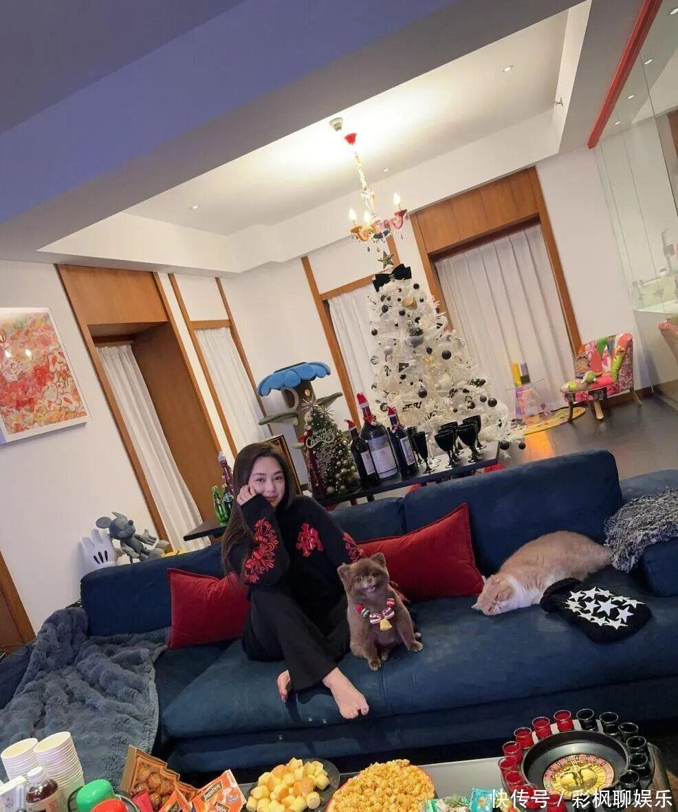 当然除了女神同框的惊喜,阿娇家中的圣诞布置也藏着不少亮点。背景里开阔的客厅和质感十足的欧式家具,隐约透出豪宅的阔绰格局。