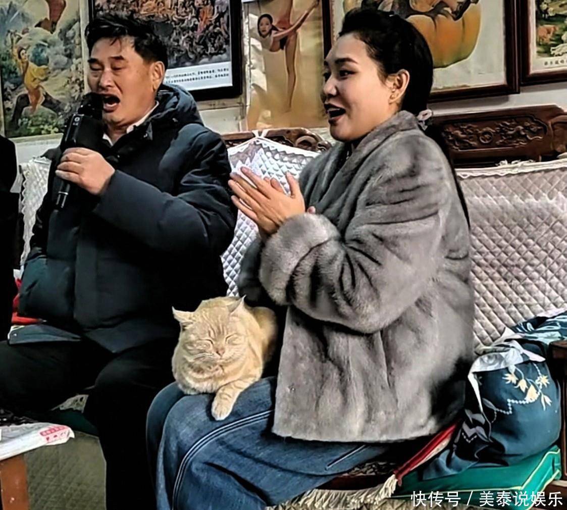 参观完了牡丹园,两个人来到了室内,因为两个人都是歌手,可谓是惺惺相惜,在一起相处就是为了探讨歌曲,所以大衣哥演唱起了歌曲,袁庆跟着节奏打着拍子。大衣哥演唱的歌曲是一首红梅赞歌,大衣哥嗓音浑厚,只是嗓音有点嘶哑,音响效果也不好,所以听起来有点刺耳,袁庆腿上的猫咪,是大衣哥家的猫咪,这猫咪可够肥的,由于没有了拍客和媒体人,也就等于歌手演出没有了观众,这场面未免有些冷清,不知道两个人是否感到失落,反正屏幕前的您看了也会感到有些失落的,还是当年几十个媒体人在抢着拍摄直播,那镜头一闪一闪的场面热闹。